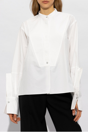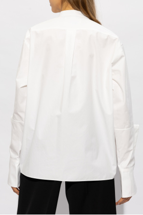 White loose-fitting shirt from JIL SANDER. Made of cotton, this design features buttons with a concealed placket, stand collar, loops at the waist and long sleeves with slits and buttoned cuffs.