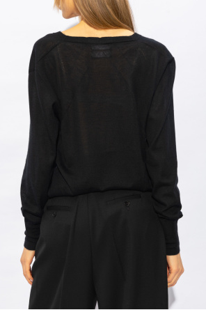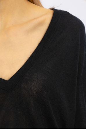 JIL SANDER的黑色羊绒毛衣。采用羊绒制成。V领,下摆和长袖设有松紧饰边。