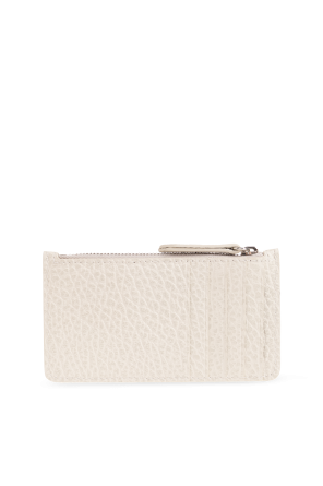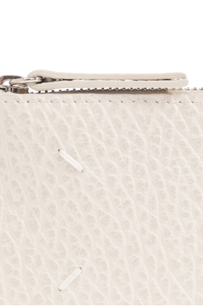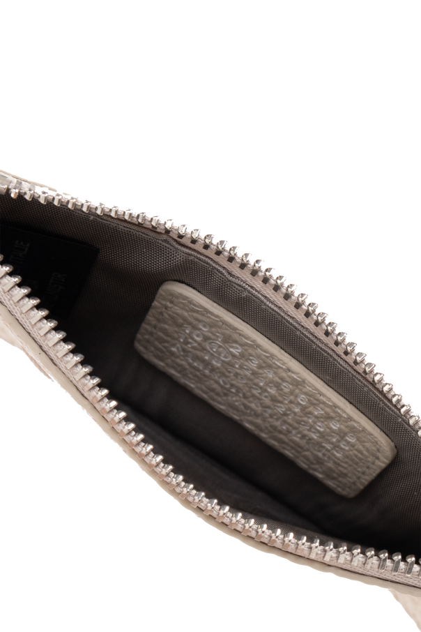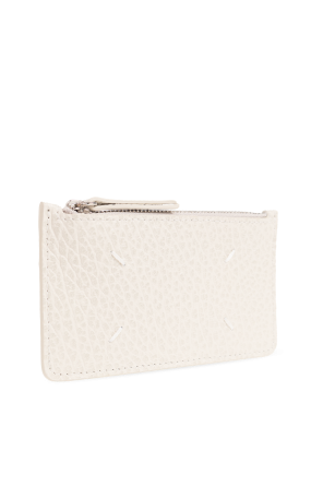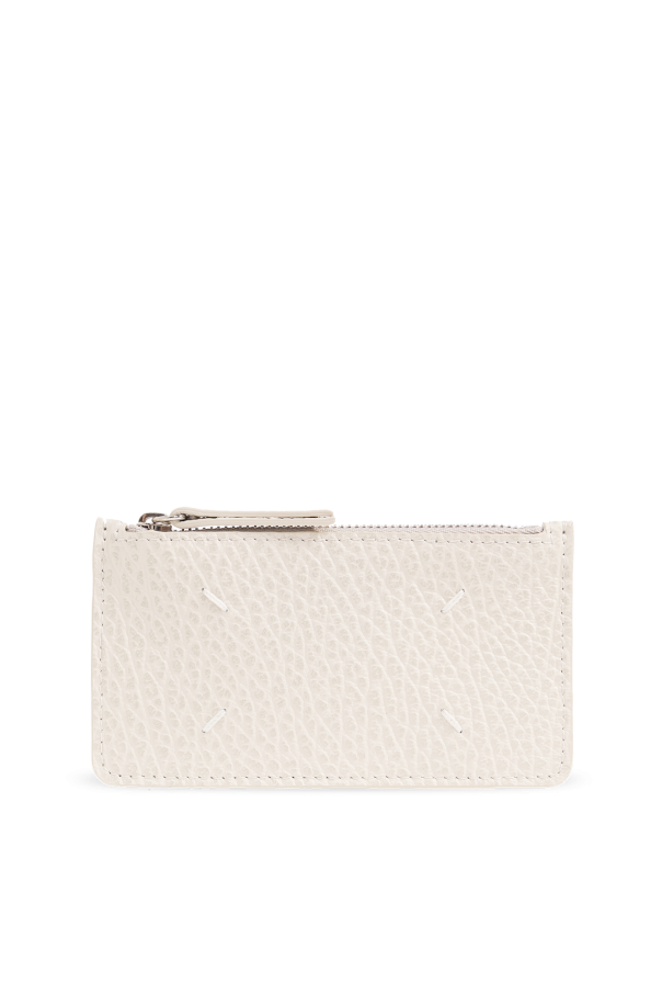 Maison Margiela的奶油色和浅灰色卡包。采用皮革制作。饰有白色的标志性绗缝。拉链口袋。五个卡位。银色金属配件。