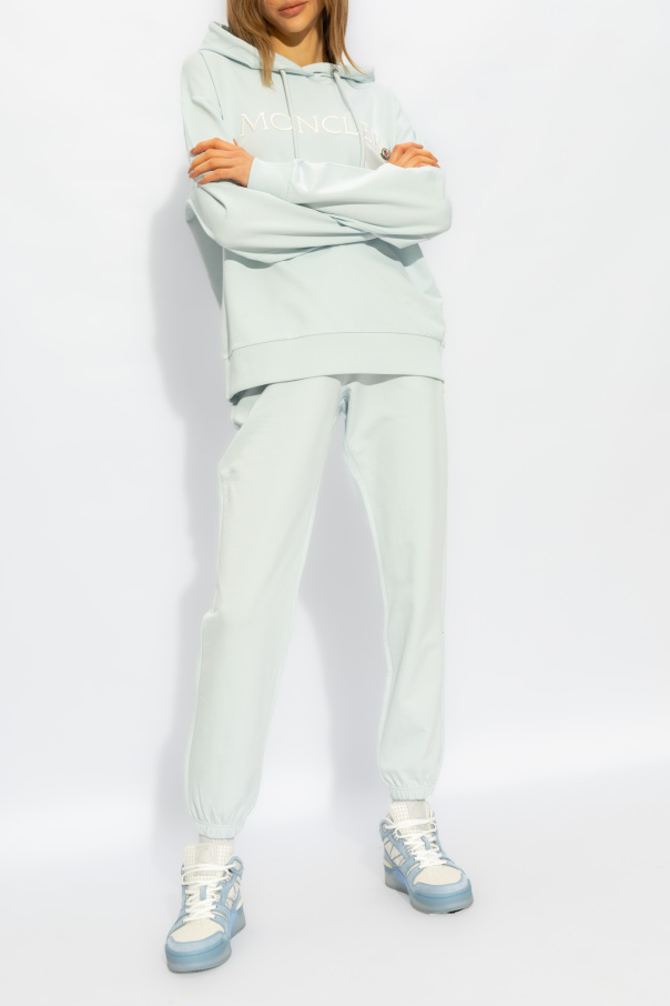 Moncler的蓝色运动衫。采用棉质面料制成。饰有贴花和刺绣logo。下摆和长袖设有松紧饰边。