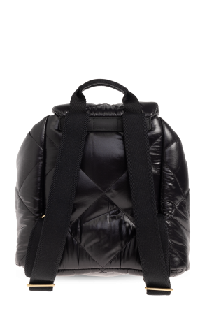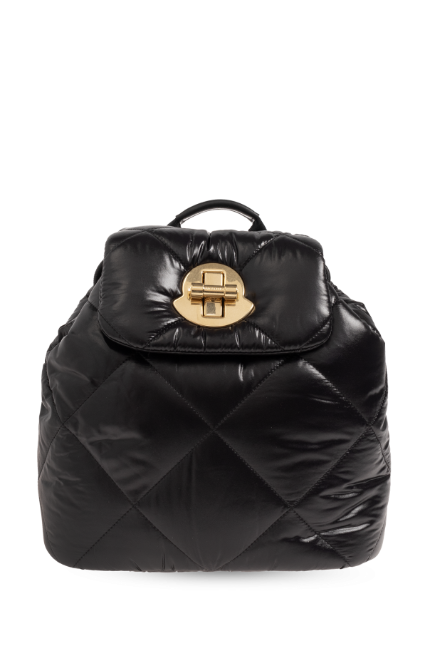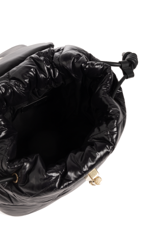 Moncler的黑色Puf背包,绗缝效果。采用带金属扭转式标志造型搭扣的盖子。半圆形手柄。可调节肩带。内部设有抽绳主隔层和一个插袋。做旧金色金属配件。