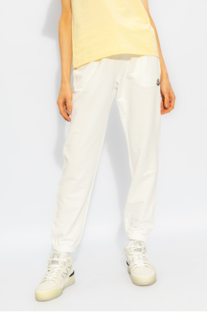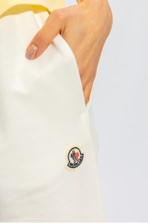 White sweatpants from Moncler. Made from cotton, this pair is embellished with a logo patch and features a drawstring waistband, two slip pockets and elasticated cuffs.