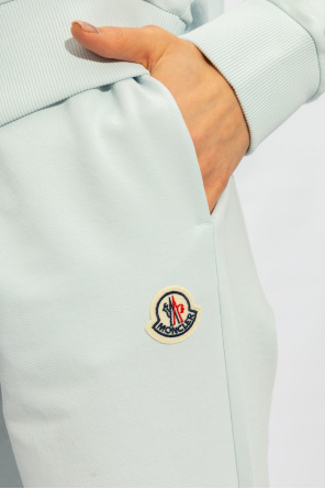 Moncler的浅蓝色棉质运动裤。抽绳松紧腰头。饰有标志贴花。两个插袋。松紧裤脚。