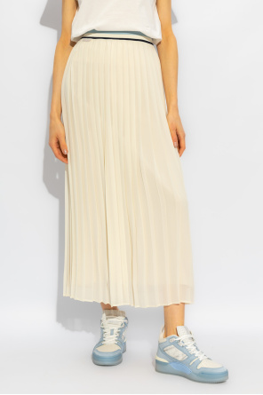 Moncler的奶油色Gonna褶皱裙,松紧腰头。