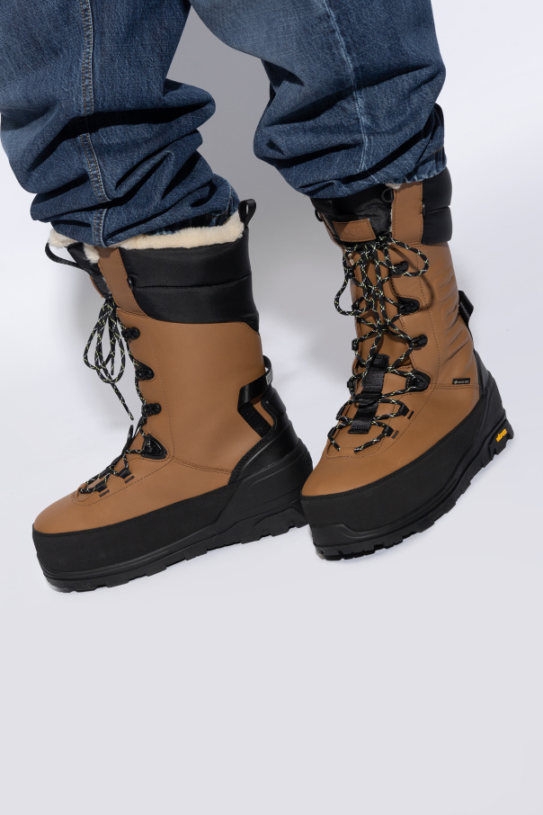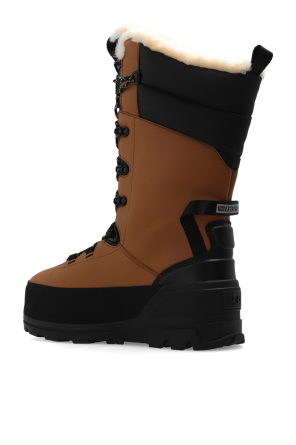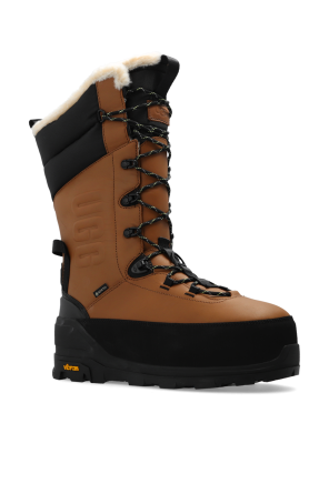 Brown and black ‘Shasta Tall’ snow boots with a logo from UGG. Made of waterproof leather, this lace-up pair features a GORE-TEX membrane, UGGplush™ lining, UGGplush™ insulation, Vibram ® outsole with ICETREK rubber compound and Arctic Grip for traction as well as UGGextreme™ technical features. Temperature range up to -32°C.