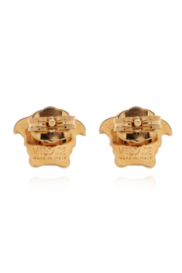 Gold-tone earrings from Versace. Flaunting a Medusa face silhouette, they feature push-back closures.