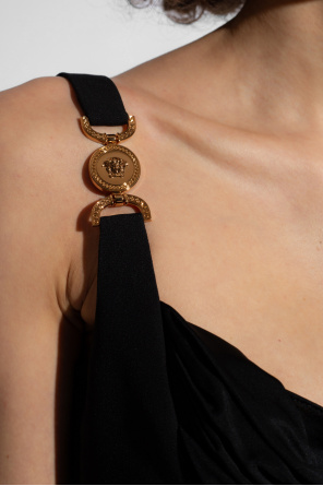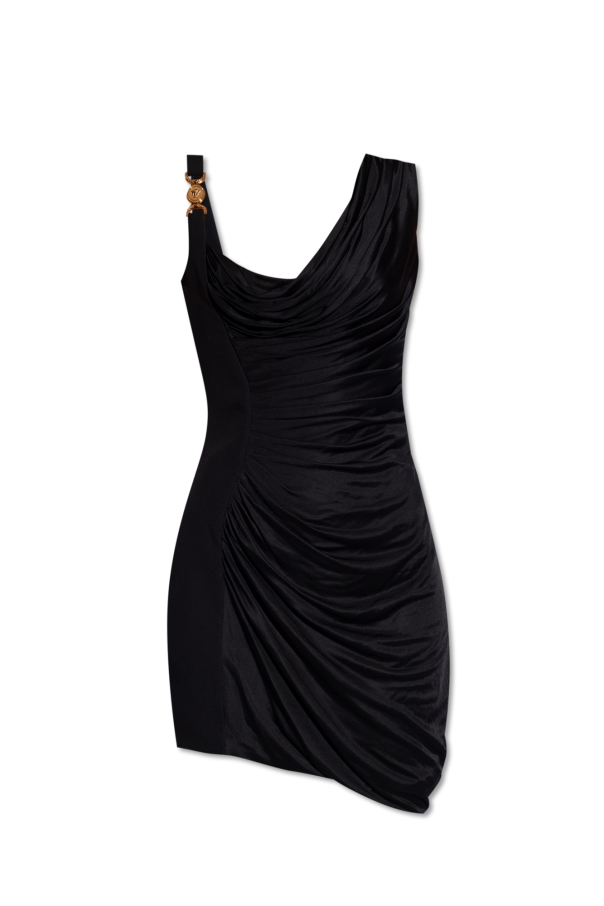 Black draped dress with a side zip from Versace.