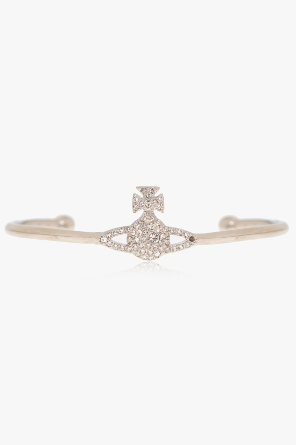 Silver-tone bracelet from Vivienne Westwood. Made of brass, this item features a logo detail embellished with crystals.