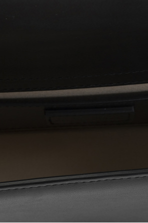 Jacquemus的黑色真皮Le Grand Bambino单肩包,磁扣开合,饰以金色金属logo细节,配有后袋。弧状提手,可拆卸可调肩带。内有一个主要分层与一个插袋。米色织物内衬。金色金属配件。