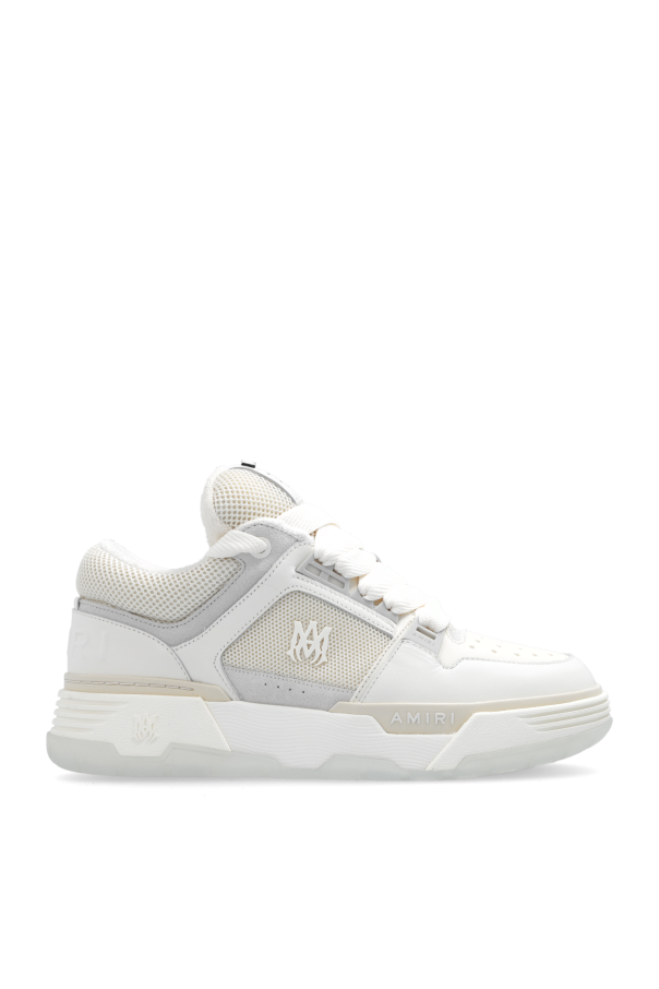 Amiri的白灰奶油色MA-1运动鞋,系带设计。由皮革和面料制成。饰有标志贴花、星形饰孔和网眼饰片。白灰色橡胶外底。