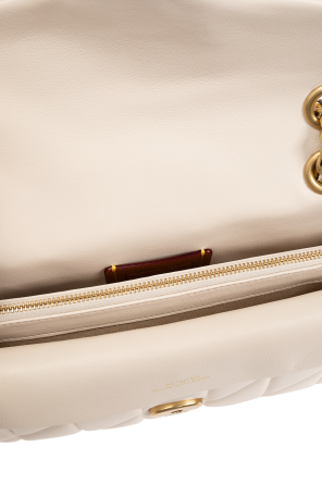 Cream ‘Tabby 26’ quilted shoulder bag from Coach. Made from leather, this design secures with a logo-shaped snap and features a long chain strap interwoven with leather, one back slip pocket, gold-tone metal hardware as well as three separate compartments (one is flapped with a magnetic closure) and one zip pocket inside.