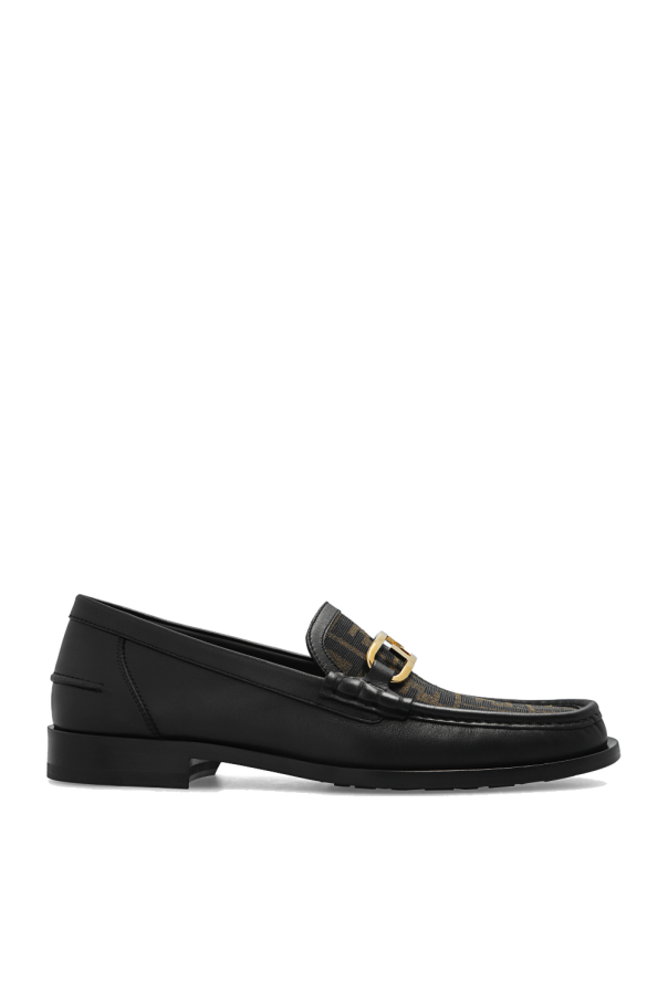 Fendi的黑色和棕色乐福鞋,采用皮革制成,饰有“F”字母组合图案,黑色皮革鞋底配有防滑橡胶嵌件。