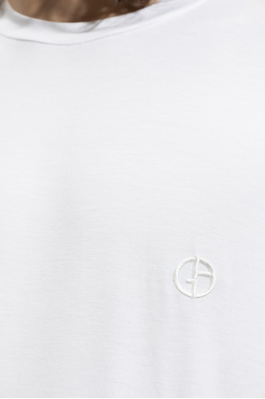 Giorgio Armani的白色圆领T恤。 采用弹力粘胶平针织面料制成。短袖,松紧衣领,正面饰有刺绣标志。