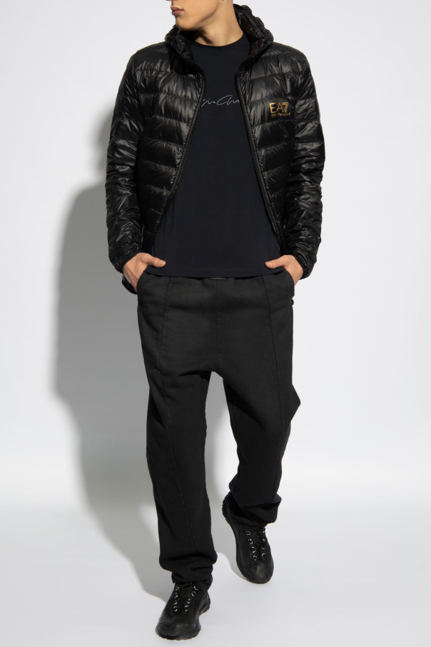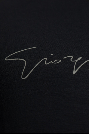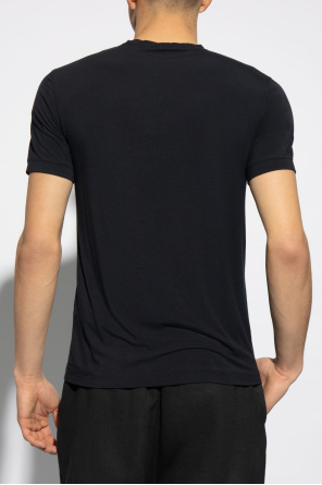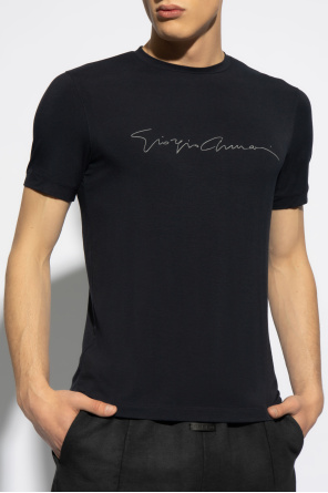Giorgio Armani的深蓝色调T恤。饰有灰色logo。短袖。罗纹圆领。