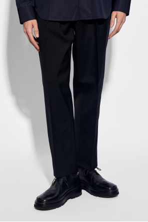 Black pleat-front trousers from JIL SANDER. Made of wool, this pair falls with slightly tapered legs and features a zip and button closure, two slip pockets and two flap pockets.