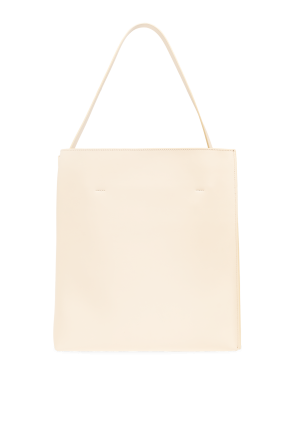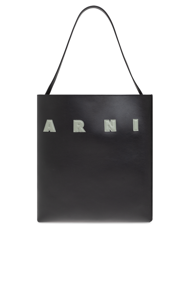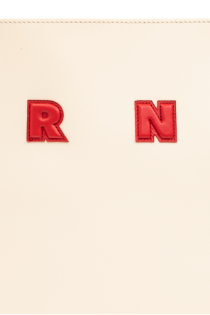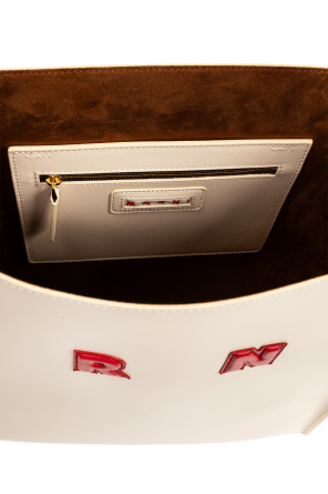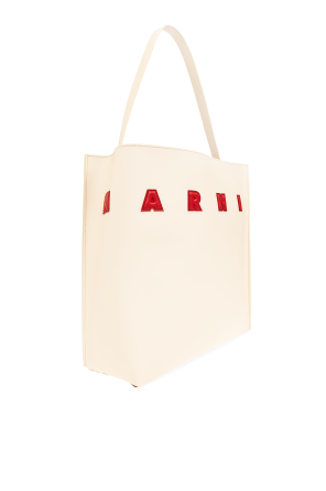 Marni的奶油色Museo托特包。采用小牛皮制成。饰有红色标志贴花。半圆形手柄。内部设有带拉链口袋的主隔层。