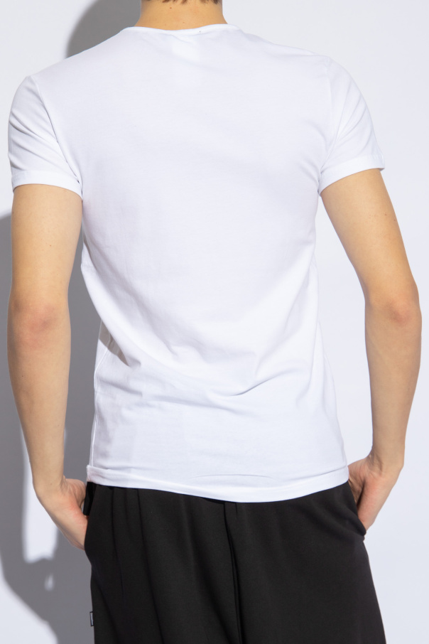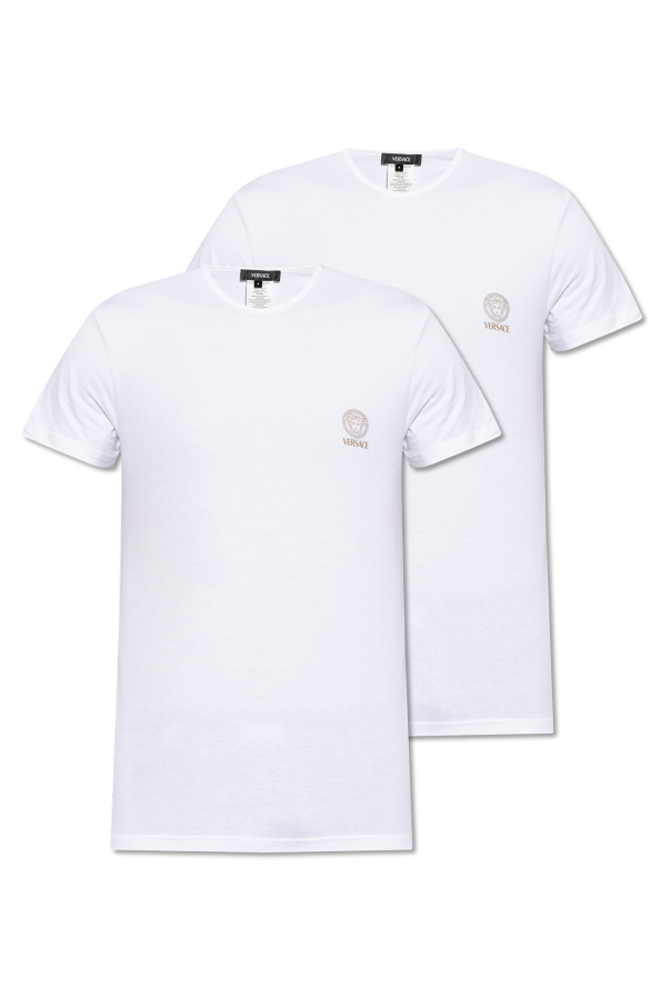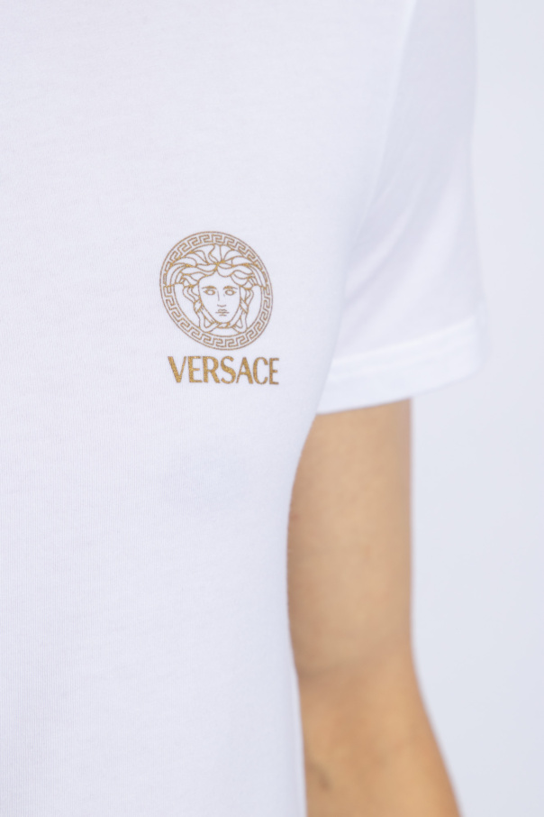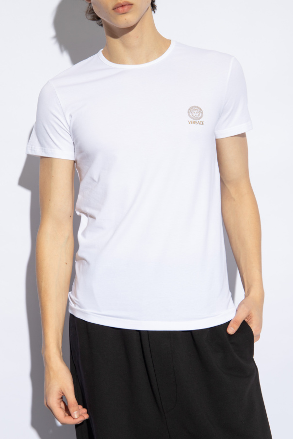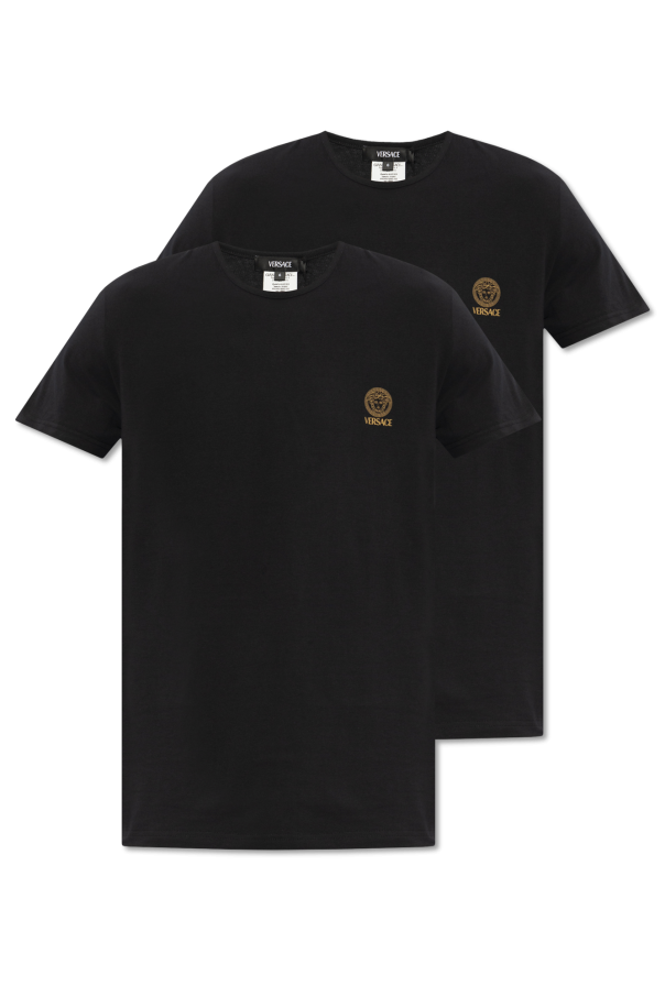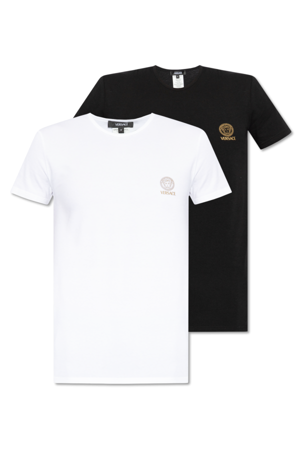Versace的黑色和白色内衣式T恤两件套装。采用棉质面料制成。饰有金色标志和美杜莎头像图案。圆领。短袖。