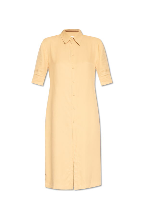 Beige dress from Jil Sander. Cut with a relaxed fit, this style features front button fastenings and short sleeves.