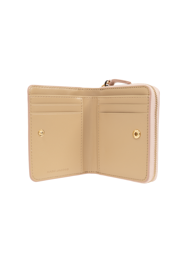 Marc Jacobs的浅粉色钱包。采用粒面皮革制成。按扣开合。饰有压花标志和贴花。正面和背面设有插袋。内部设有一个拉链零钱袋,一个纸币隔层,两个插袋和四个卡位。