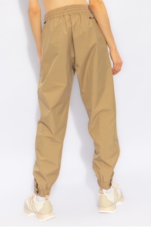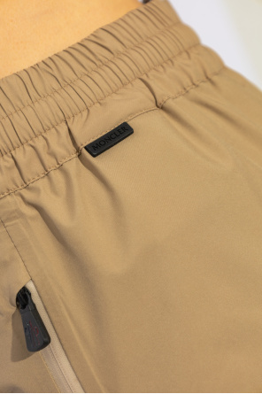 Beige trousers from Moncler Grenoble, the ‘Moncler Grenoble Day-Namic’ collection. Crafted from fabric with a waterproof, breathable GORE-TEX membrane, this pair features an elastic drawstring waistband, logo patch at the back, two zip pockets and legs with a logo and elasticated cuffs with adjustable snap buttons.