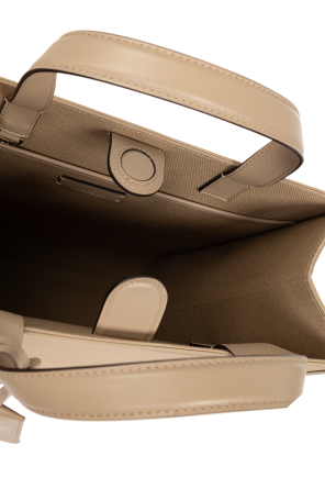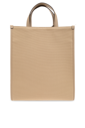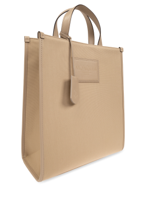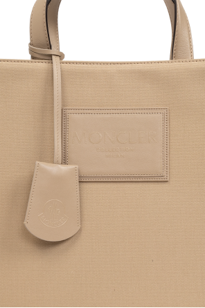 Beige ‘Alanah’ shopper bag from Moncler. Made of cotton canvas with leather trims, this model features a magnetic snap closure, logo patch, two half-round handles with a keyring and one internal compartment with one slip pocket.