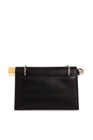 Jacquemus的黑色La Petite Pochette Rond Carre单肩包。采用羊皮制成。磁扣开合。正面饰有金属logo图案。背面设有磁扣口袋。提手饰有球形和立方体细节。内部配有一个带卡槽的主隔层。金色和银色金属饰件。