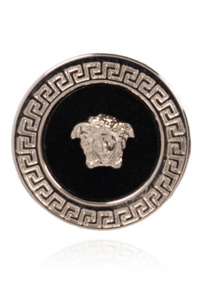 Versace的银黑色黄铜耳环,饰有美杜莎头图案。耳钉设计。