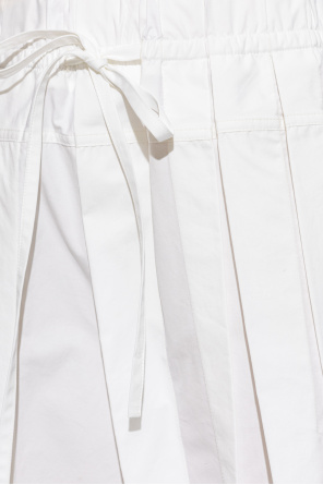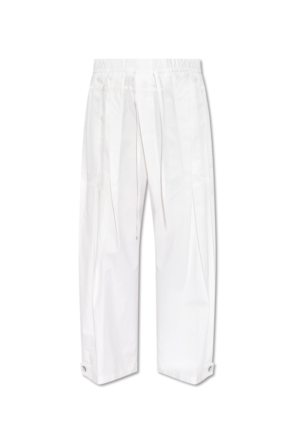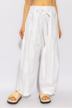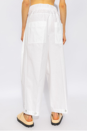 White trousers from JIL SANDER. Made from organic cotton with an oversize fit, this pair falls with wide legs and features a drawstring waistband, four slip pockets, pleated details and button adjusters on the bottom.