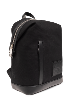 Black ‘Alanah’ backpack from Moncler. Made from canvas and trimmed with leather, this design fastens via a two-way zip and snaps on the sides and showcases a logo patch on the front, one zip pocket on the front, one half-round handle, silver-tone metal hardware, adjustable shoulder straps and one internal compartment with a slip pocket.