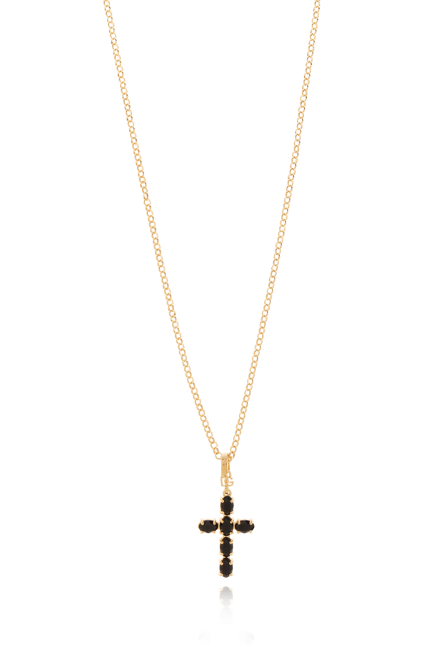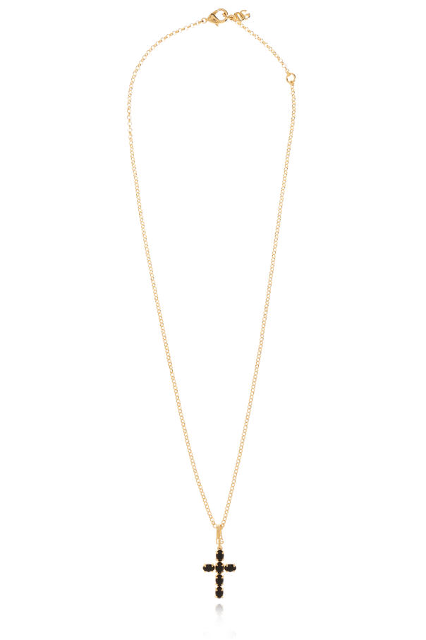 Dolce & Gabbana的金色黄铜项链,饰有带黑色镶嵌的十字架吊坠。配有龙虾扣开合。