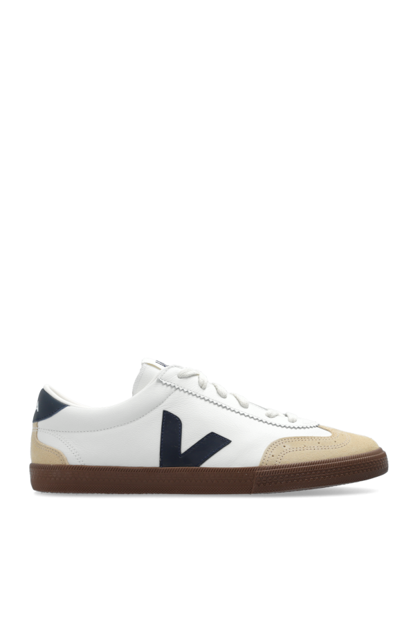 White, beige and black ‘Volley O.T. Leather’ sneakers from Veja. Made from leather, this lace-up model sits on a brown rubber sole and showcases the brand's logo.