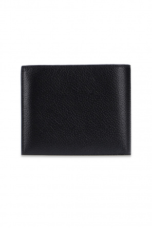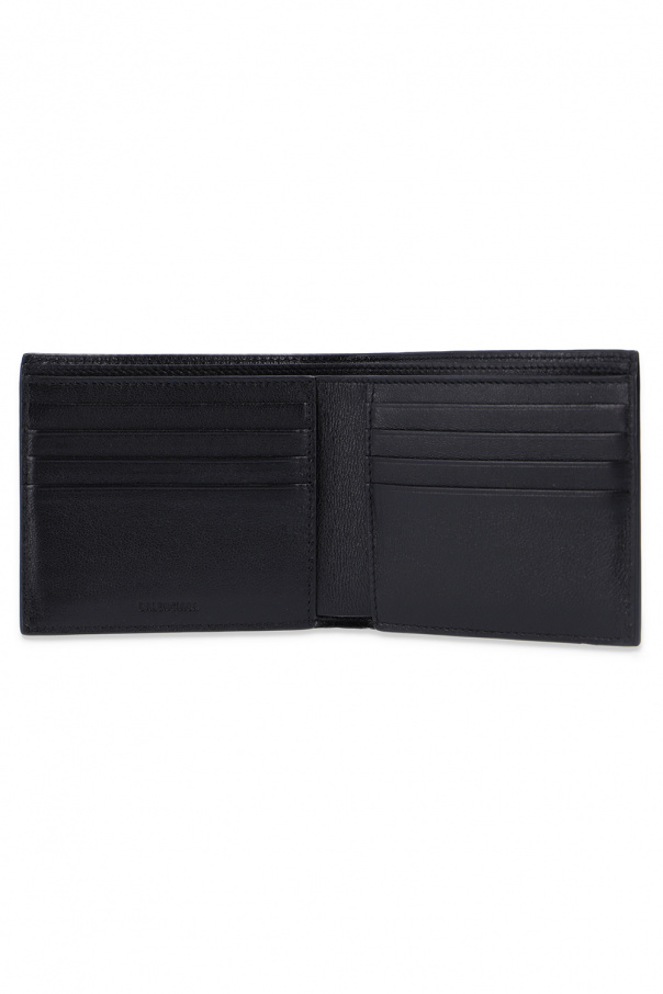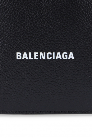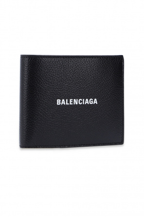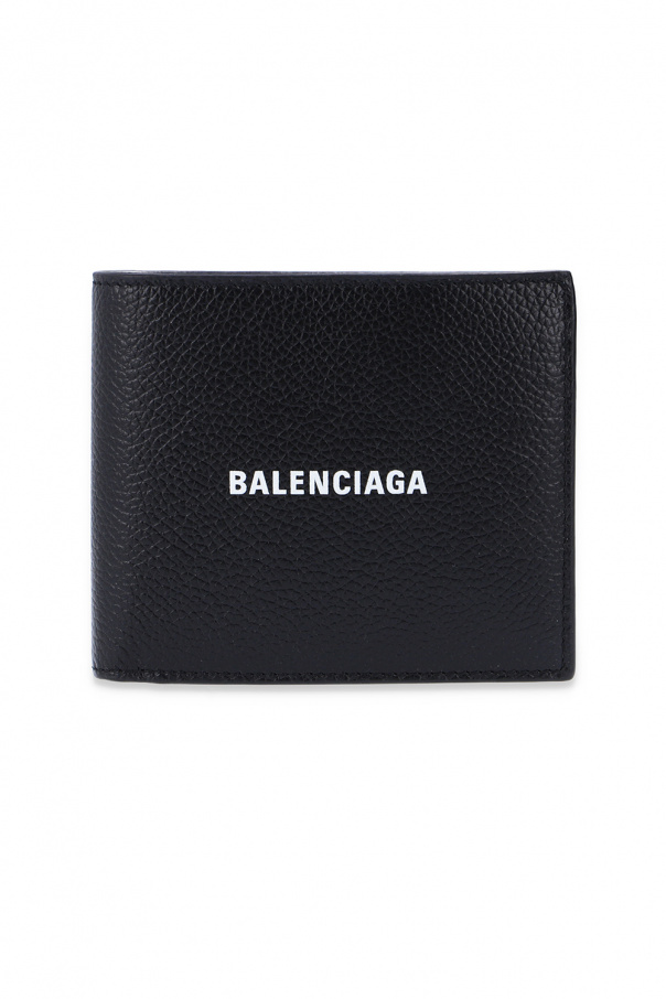 Balenciaga的黑色可折叠钱包。牛皮革质。正面饰有白色调logo图案。内部附两个钞票隔层,两个口袋,及八个卡槽。
