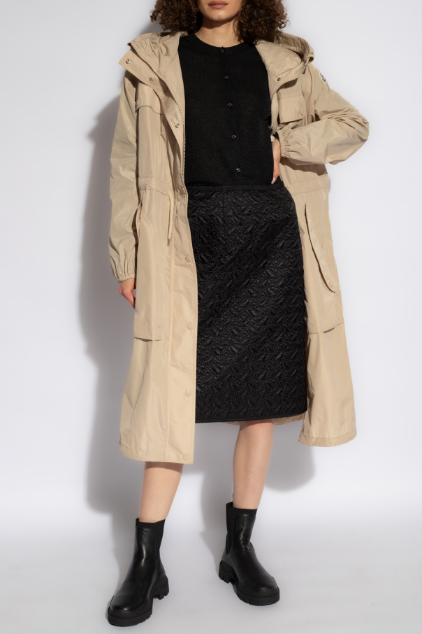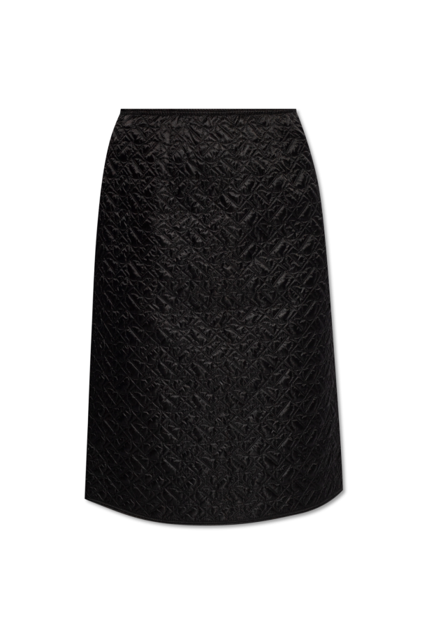 Quilted skirt in black from Moncler. This style features a side zip accompanied by a hook & eye closure.