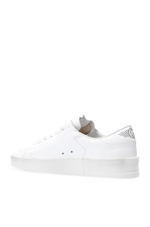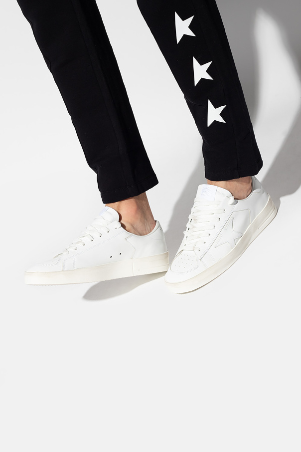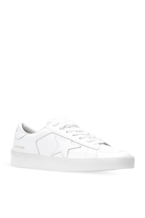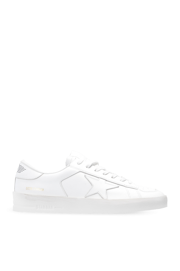 Golden Goose的白色Stardan运动鞋。皮革质。附系带。鞋舌饰有logo贴片。附孔洞设计。奶油色橡胶鞋底。