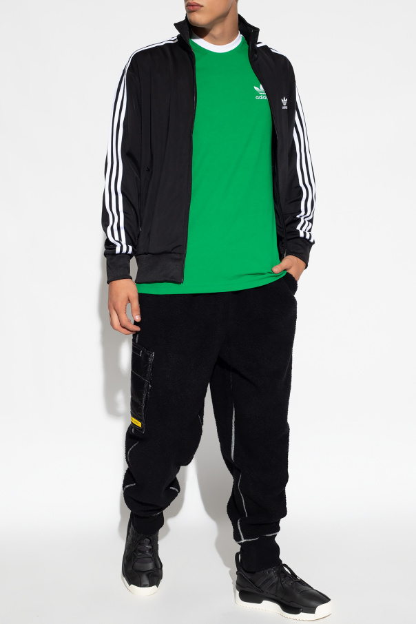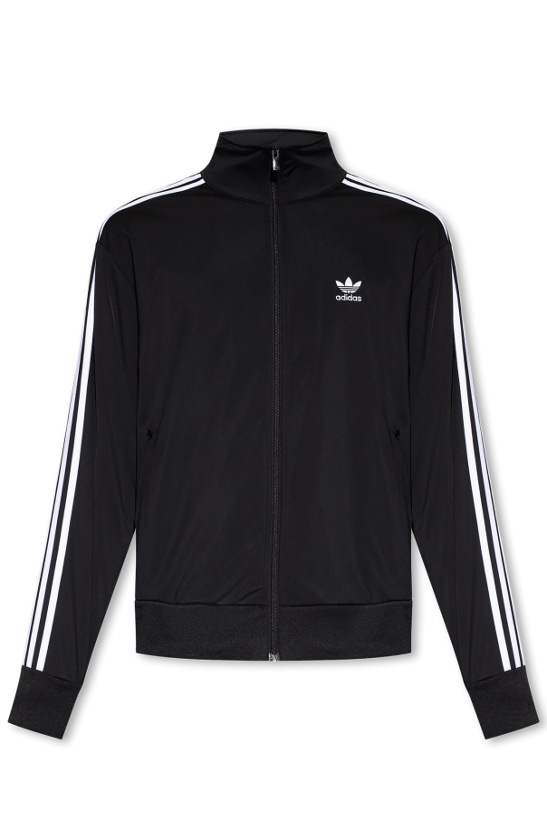 ADIDAS Originals的黑色运动衫,采用再生面料制成,拉链开合,三叶草徽标刺绣,品牌标志性的白色三条纹,立领,两个拉链口袋,下摆和袖口处有罗纹饰边。