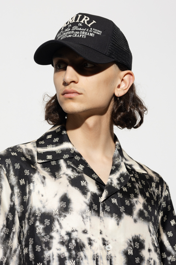 Amiri的黑色棒球帽,采用棉质正面和网状背面,后置可调带,正面饰有奶油色徽标刺绣。
