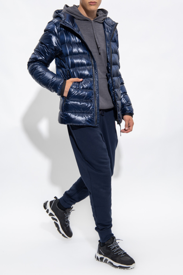 Navy blue sweatpants from Canada Goose. Crafted from cotton, this pair features a drawstring waistband, elasticated cuffs, two side seam pockets, one back slip pocket and a red, white and blue logo patch on the front.