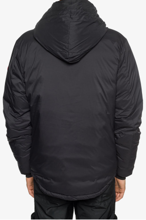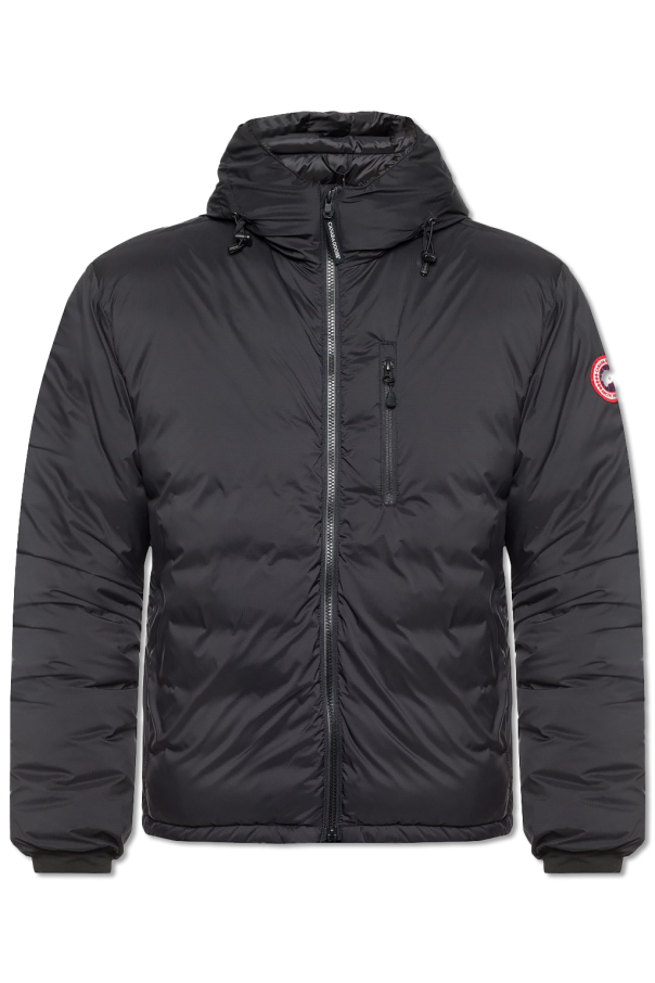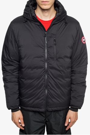 来自Canada Goose的黑色'Lodge'连帽羽绒服。 采用双向拉链固定。 缀有红蓝白标志贴片。 正面有3个拉链口袋,松紧袖口。