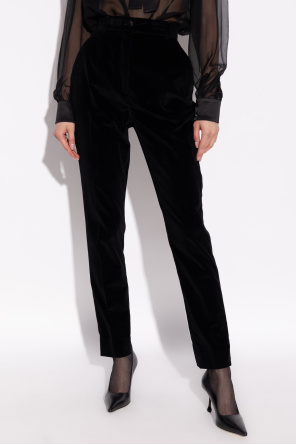 Dolce & Gabbana 黑色 带侧条纹的天鹅绒裤子