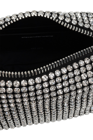 Alexander Wang的黑色Heiress手提包。饰有莱茵石。附拉链。皮革质手柄。银色调金属配件。内部附一个隔层及两个卡槽。