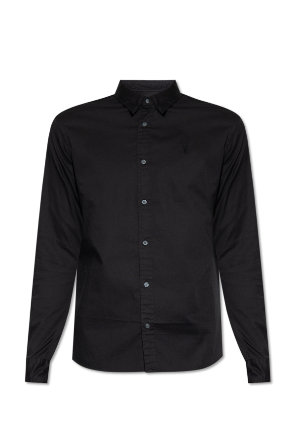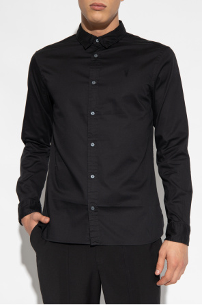 AllSaints的Hawthorne黑色衬衫,采用棉质面料制成。纽扣开合。饰有刺绣标志。长袖。
