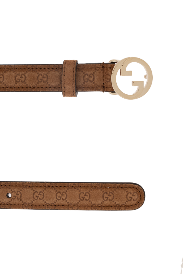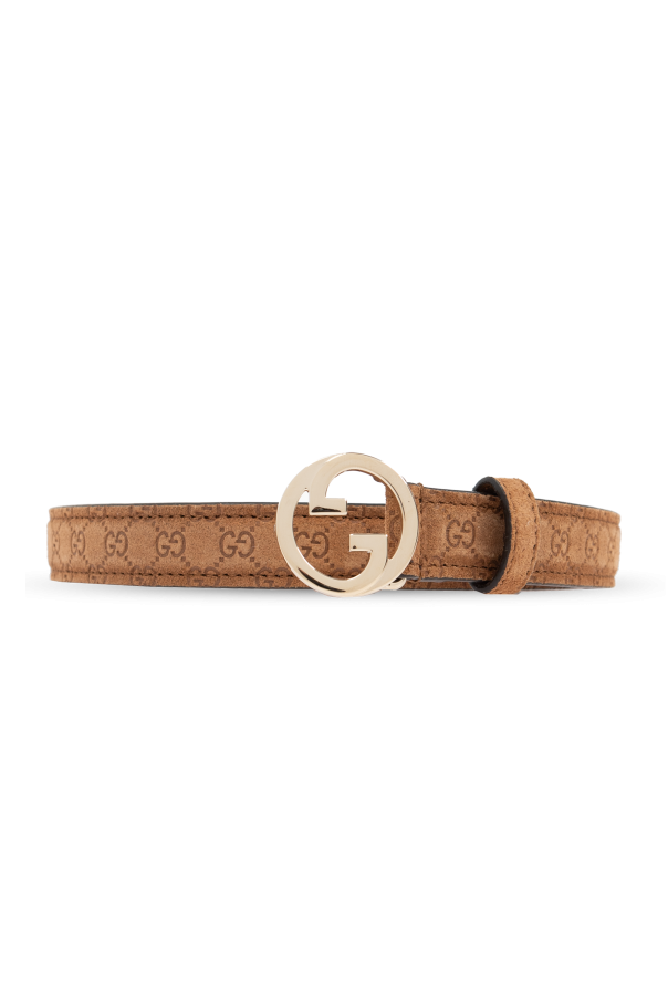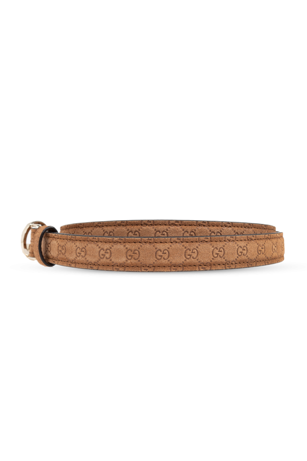 > Gucci 棕色 带有字母组合的麂皮腰带