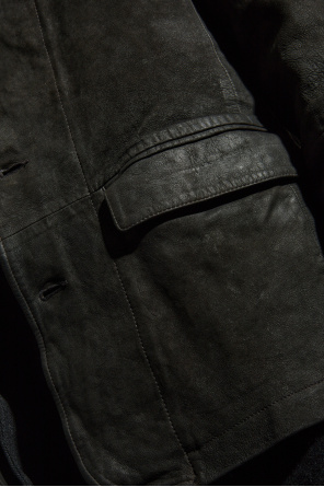 AllSaints 黑色 麂皮夹克 Survey,带有 vintage 效果