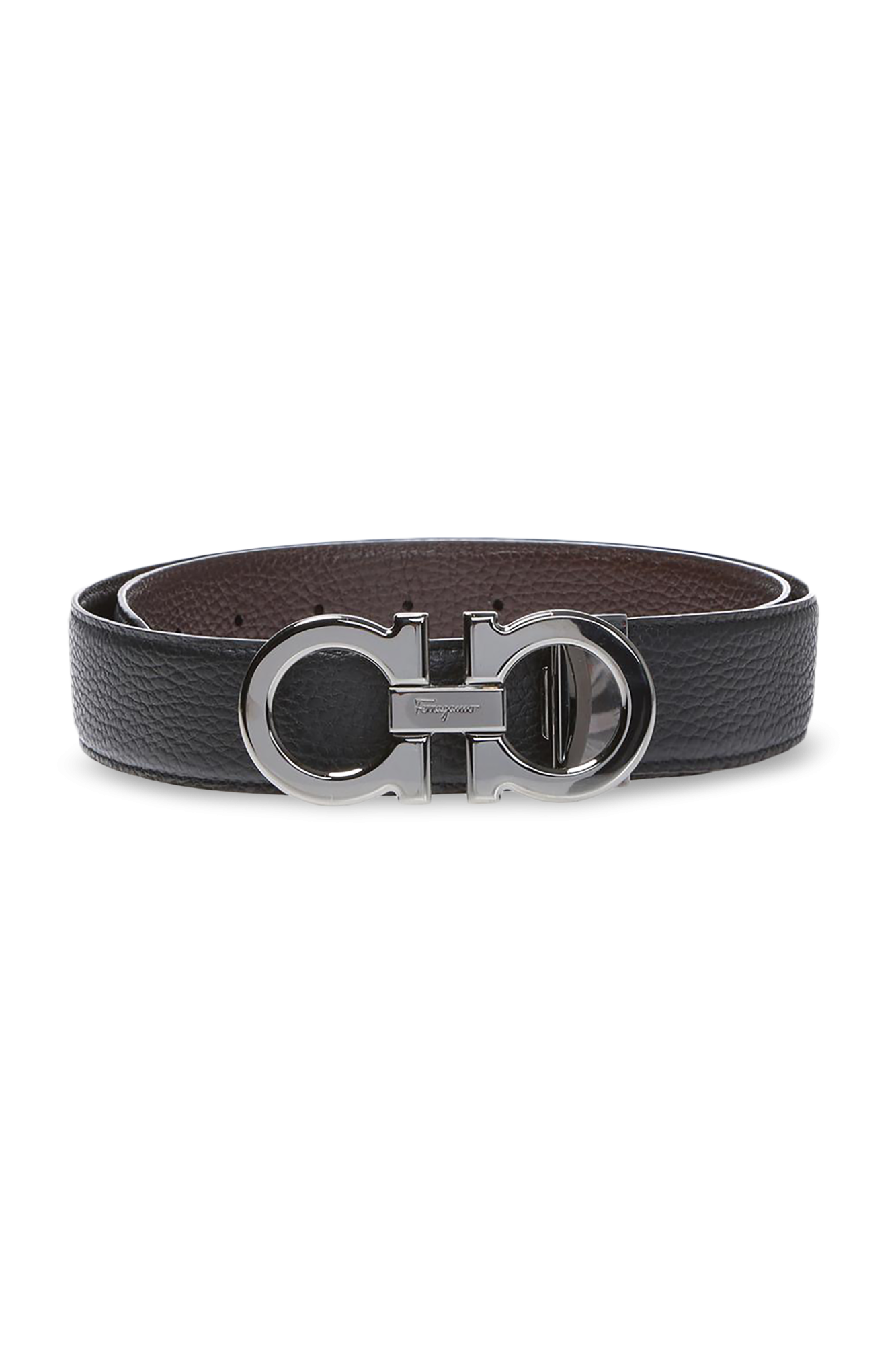 这款黑色腰带来自Salvatore Ferragamo,采用粒面小牛皮制成,配有黑色标识形搭扣。