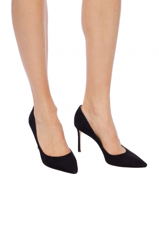 周仰杰 (Jimmy Choo)的黑色'Romy' 皮革高跟鞋。尖头。米色皮革鞋底。