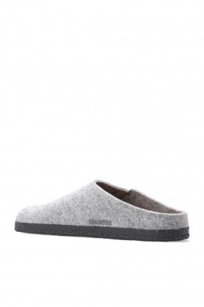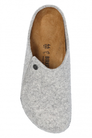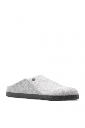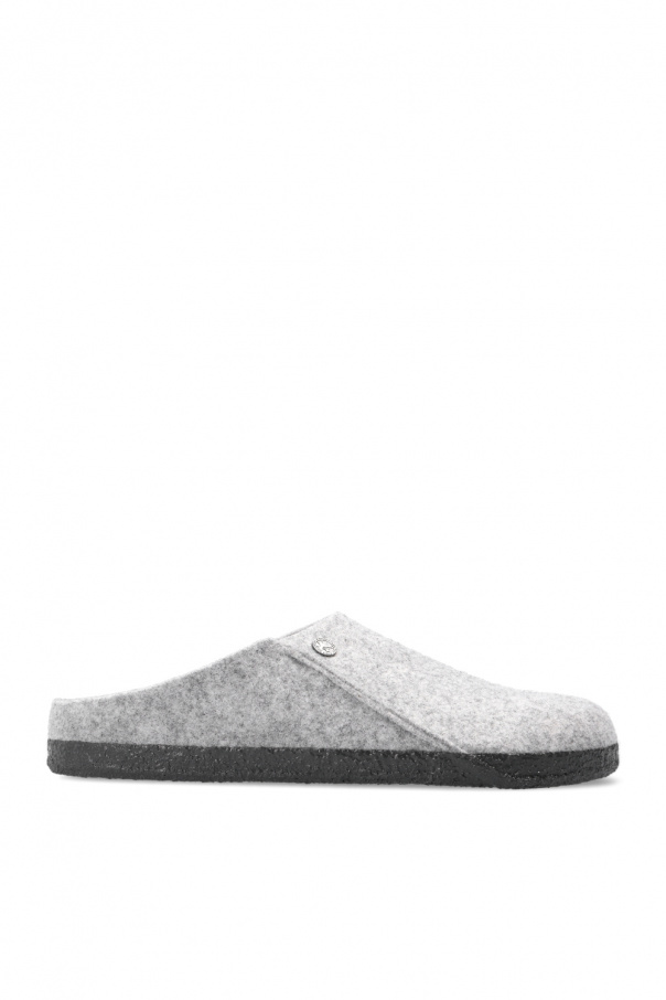 Birkenstock的浅灰色调Zermatt Rivet拖鞋。兔毛毡质。含logo。轻质软木及橡胶质深灰色鞋底。