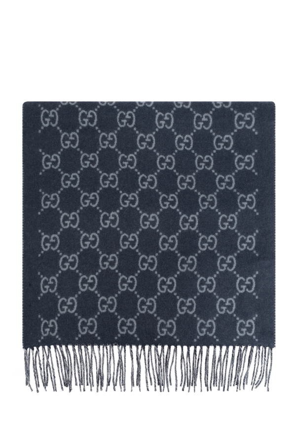 Gucci 深蓝色 带有字母组合的羊绒围巾