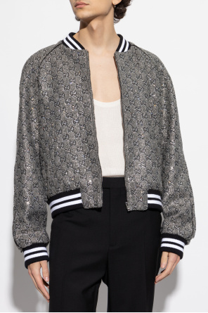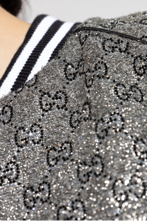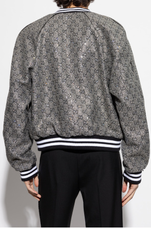 Gucci 灰色 带金银丝线和闪亮贴花的飞行员夹克