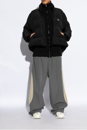 Balenciaga的白色Track系带运动鞋,饰以黑色印花标识。白色橡胶鞋底。