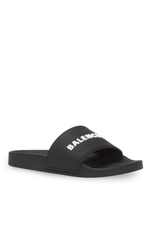 巴黎世家(Balenciaga)黑色凉拖。饰有白色浮凸logo。